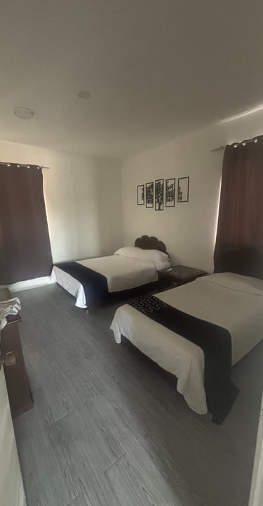 Habitacion tipo villa, con Dos recamaras, sala comedor y cocinapacion hasta para 4 personas, cuentan con cocina, refrigerador, aire acondicionado y tv con cable.